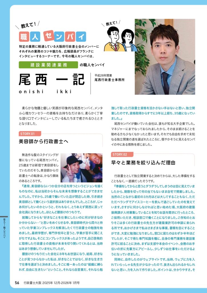 大阪府行政書士会の会報にインタビュー記事が掲載されました